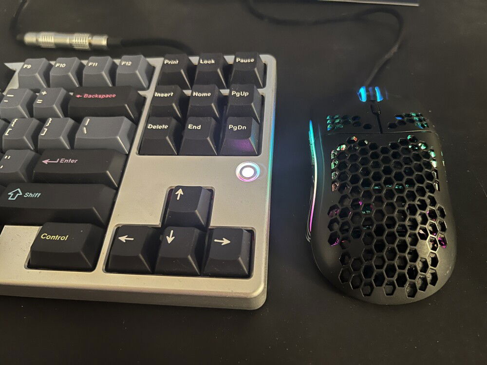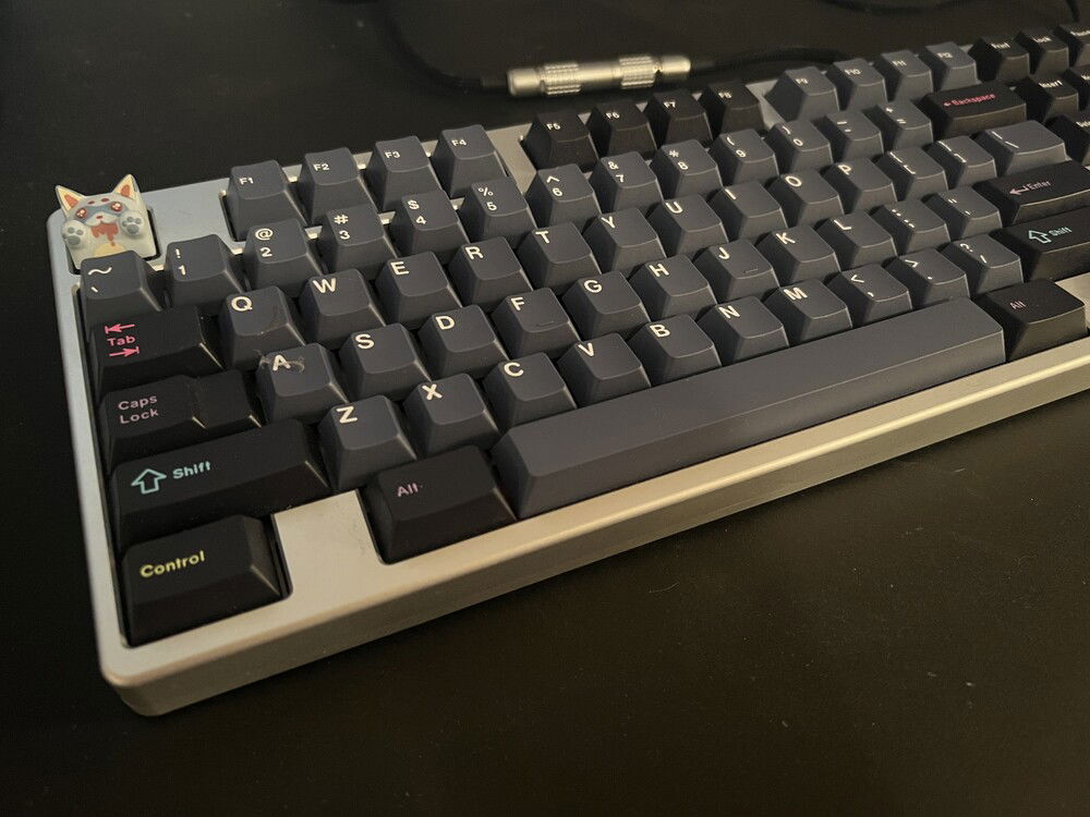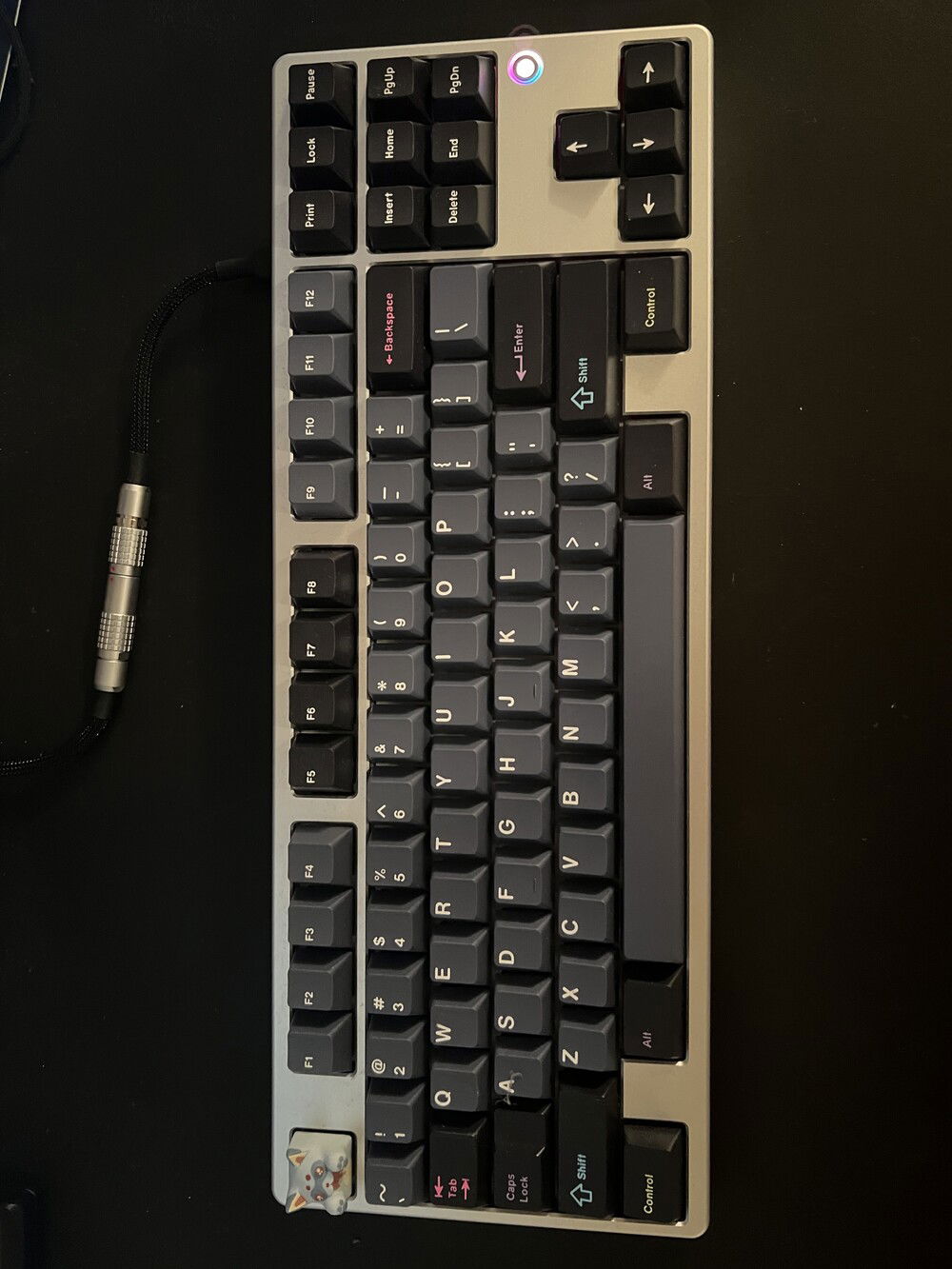 Switches: Cherry MX Black (Hyperglide) (lubed with Krytox 205g0, filmed with TX films, spring swapped with Kinetic Labs 63.5g Symmetric Long Springs)