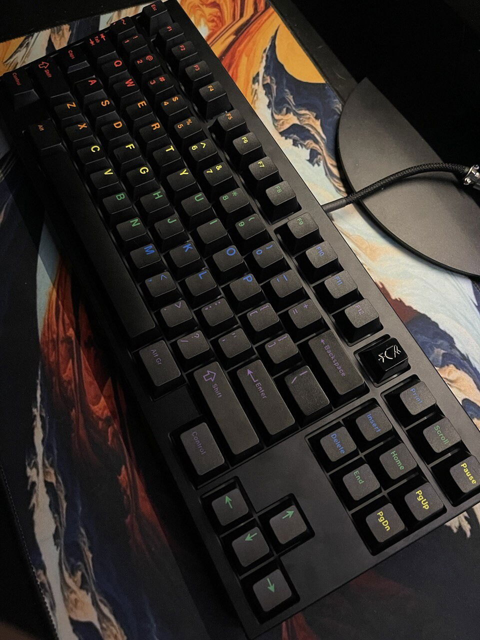 It's like its RGB without the RGB. Black Chroma Mr. Suit with GMK Midnight Rainbow keycaps. Sound test is found here!