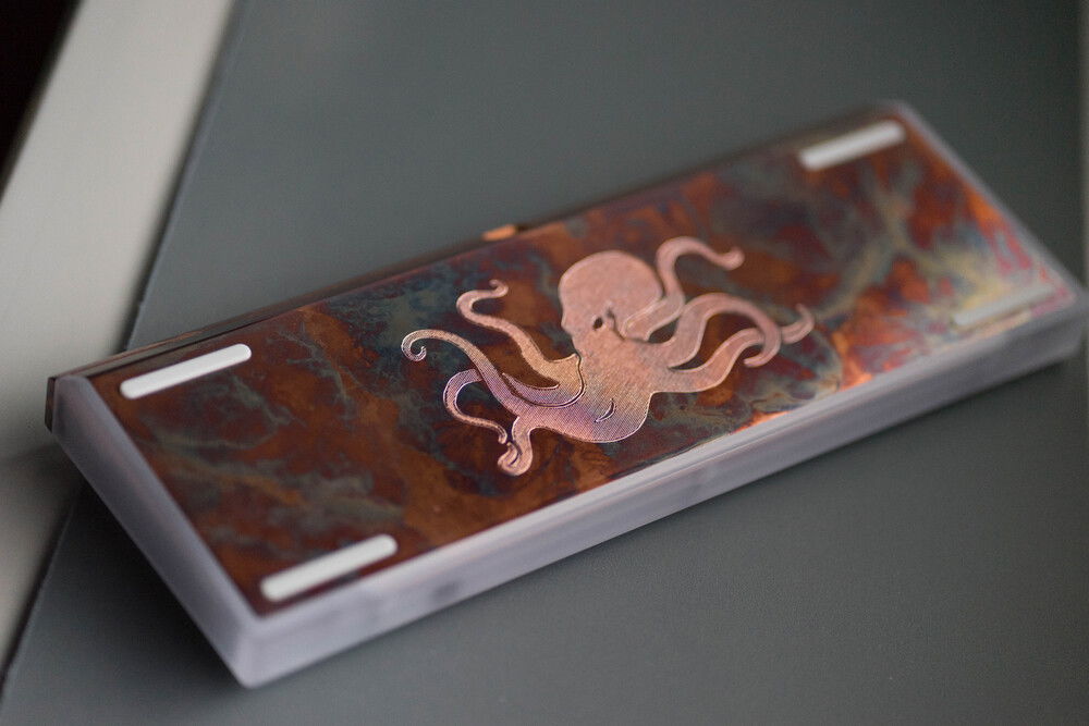 I sent the bottom to KneeDeep to patina also and then engraved the octopus image from GMK Copper on the back.
