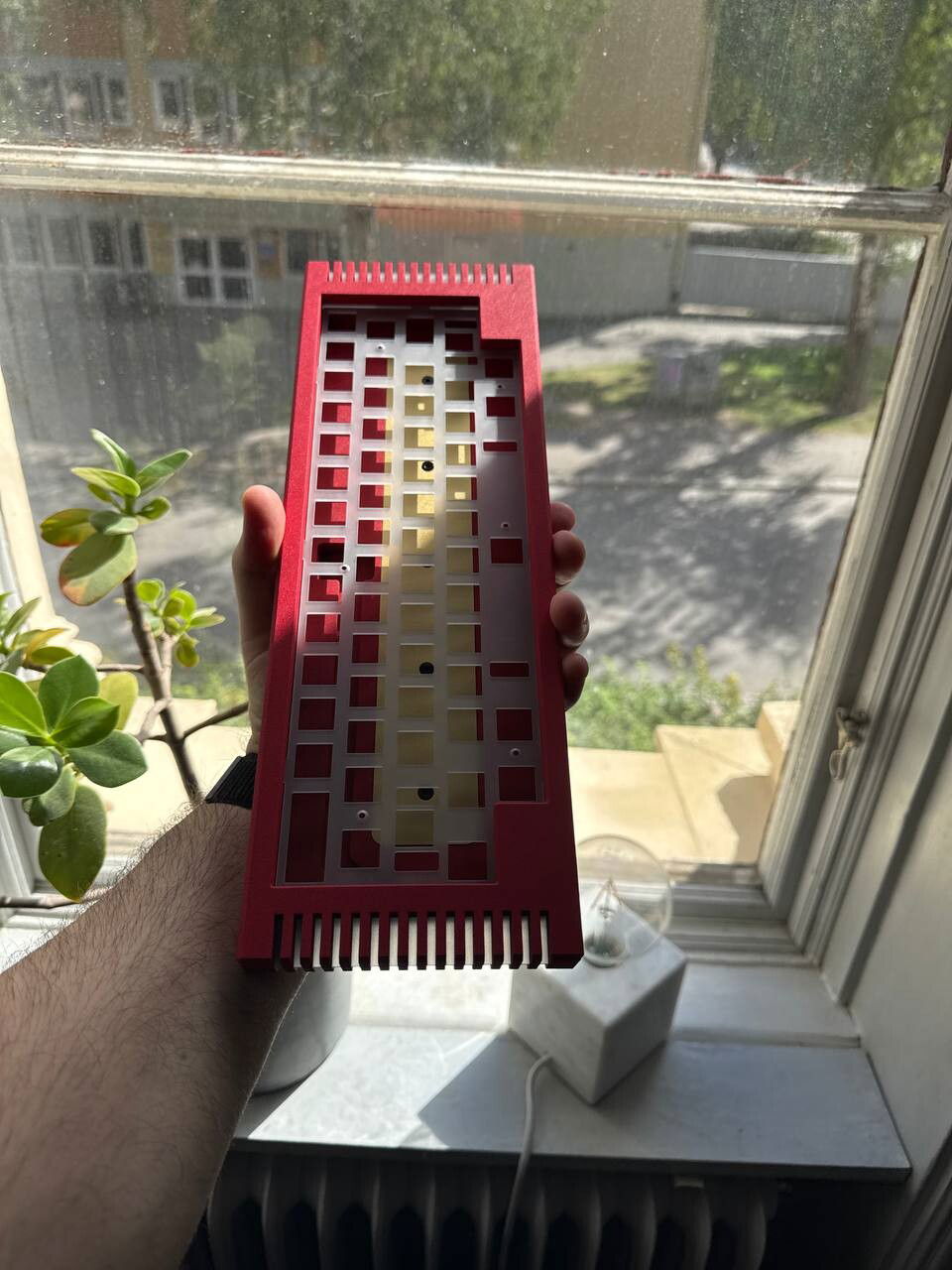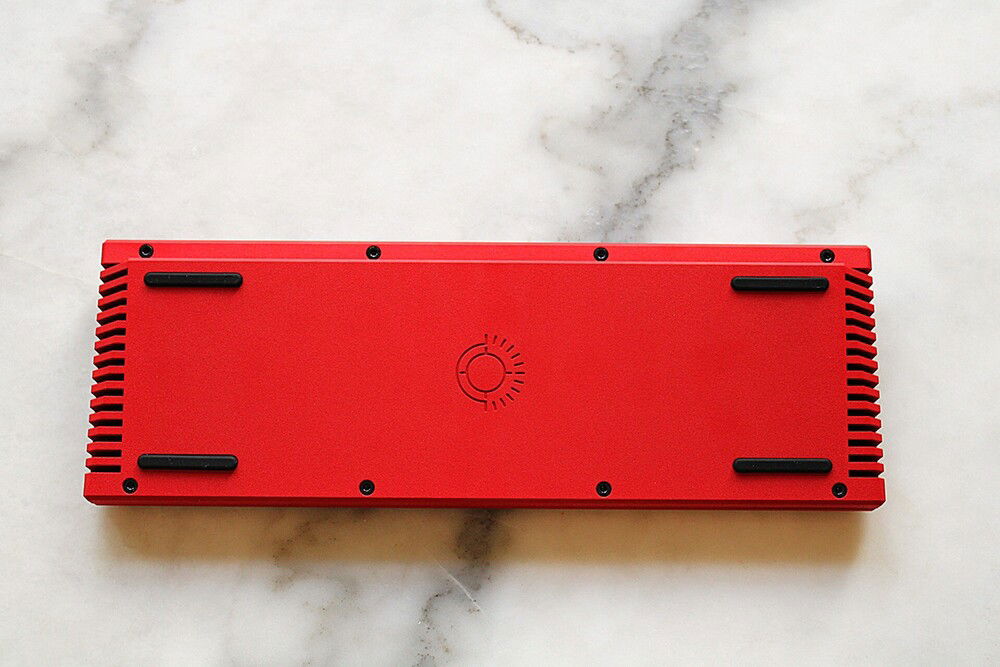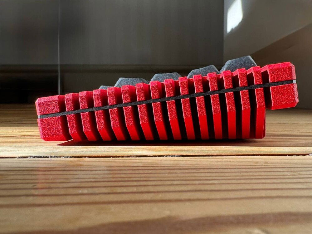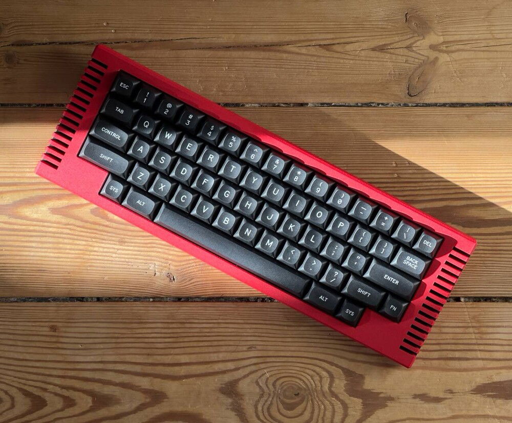 Thermal v2, manufactured by Salvun, designed by Wilba. Tried a number of configs regarding plates, switches and stabilizers before ending up with this one consisting of a Brass (custom cut) plate, Gat TYPE-R switches, Cherry-C3 stabs, MTNU WoB keycaps