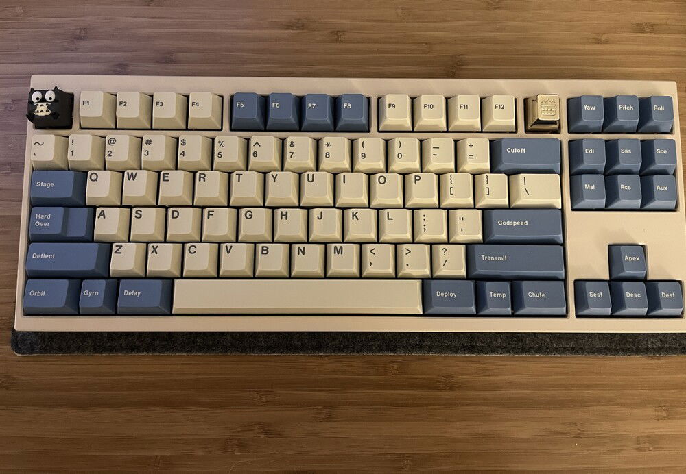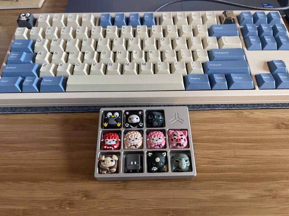 Tiramisuit with GMK Godspeed, Totoro Owl Artisan, Prevail Epsilons L+F with case and plate foam, NO PE FOAM. Epsilons have that PE foam sound on their own.