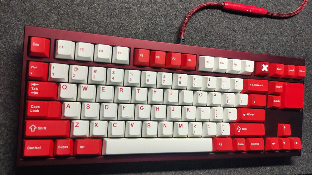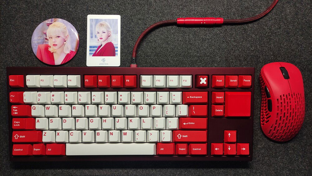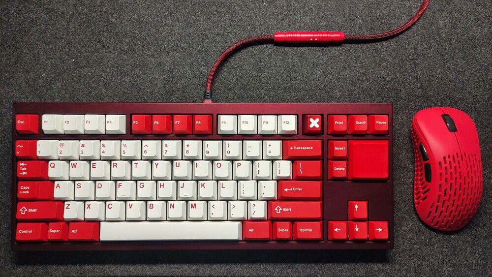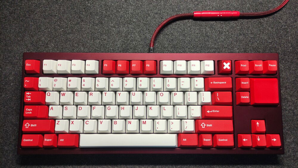 Keycaps: GMK Classic Red, Classic Red Rama keycap, 2x2 Red PBT keycap